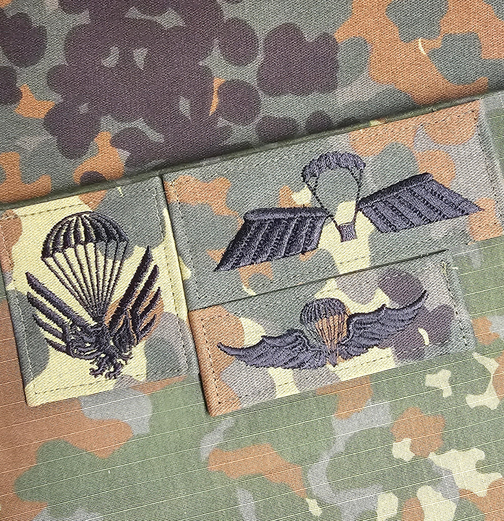 Flecktarn is a family of camouflage patterns used by the German Armed Forces (Bundeswehr), officially introduced in the 1990s. The term "Flecktarn" is derived from the German words "Fleck" (spot) and "Tarnung" (camouflage), reflecting its distinctive multi-spot design. The original pattern consists of five colors: dark green, light green, brown, black, and tan, which work together to create a disruptive effect that makes the wearer less visible in wooded environments. Flecktarn has been adopted by various countries and has influenced military uniform development worldwide.